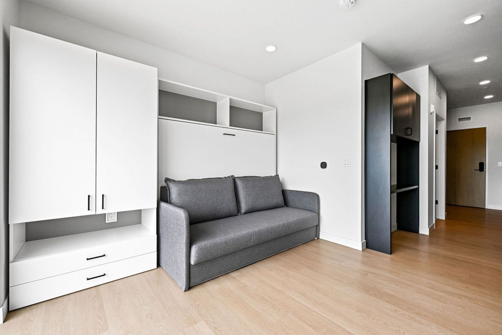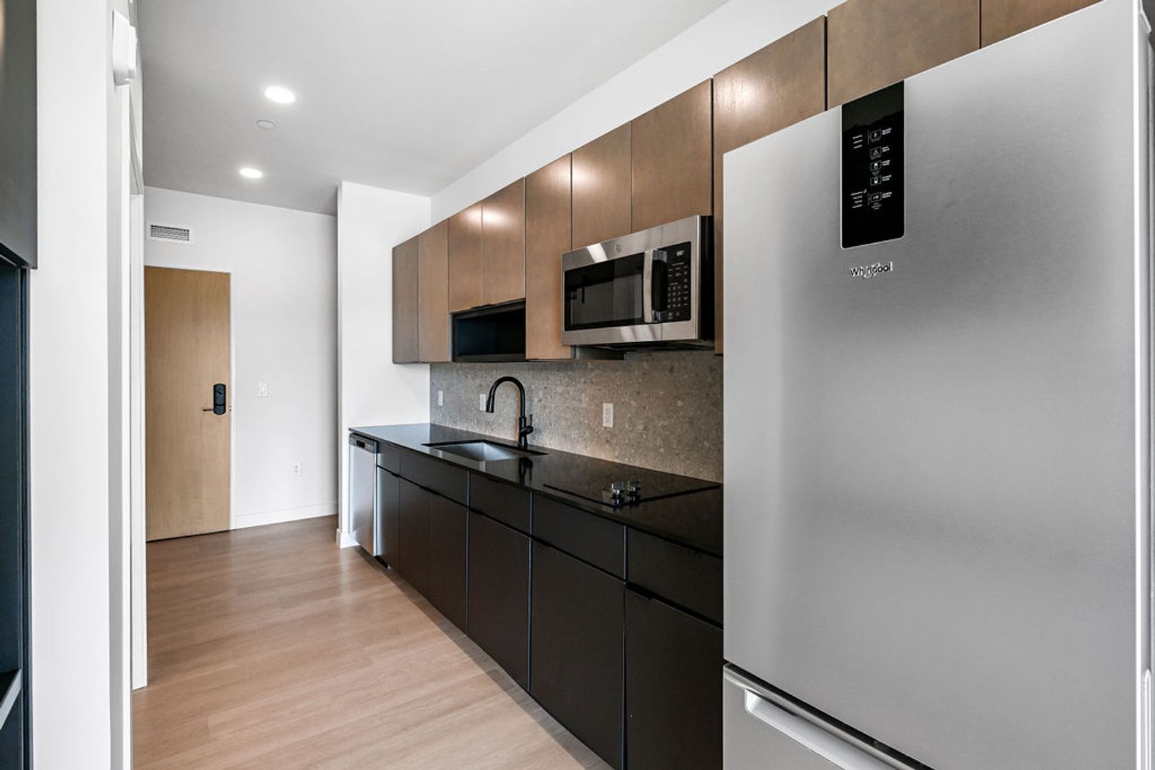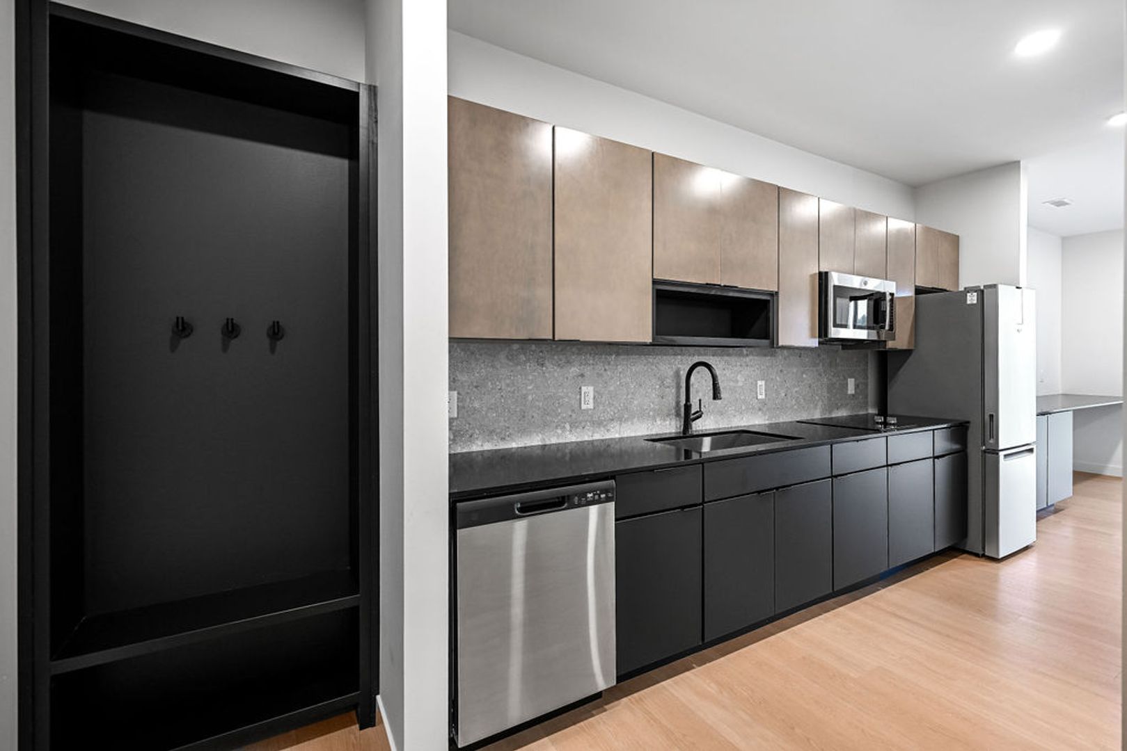 This is a studio unit in Mackson Corners, a 4-story residential development located at 417 Marion Road in Oshkosh, WI, directly on the Fox River. The building includes 74 residential units of various sizes, including furnished and unfurnished studios, one-bedroom units, and two-bedroom units. Features like the river-facing fitness center and walk-up residential units connect the building to the surrounding neighborhood, encouraging pedestrians to flow through the site to the river. There is also ample space for gathering on site including a first-floor lounge & rooftop terrace. The building has both underground, heated parking and surface parking.