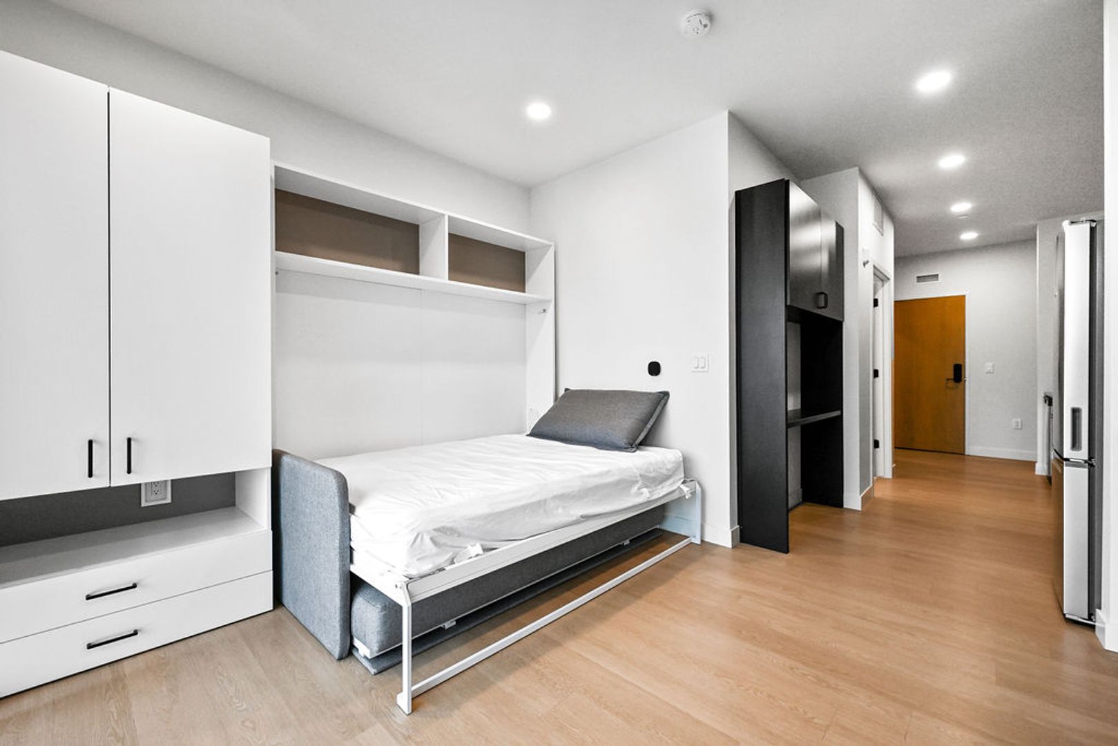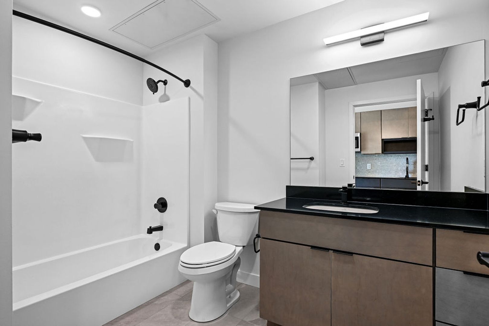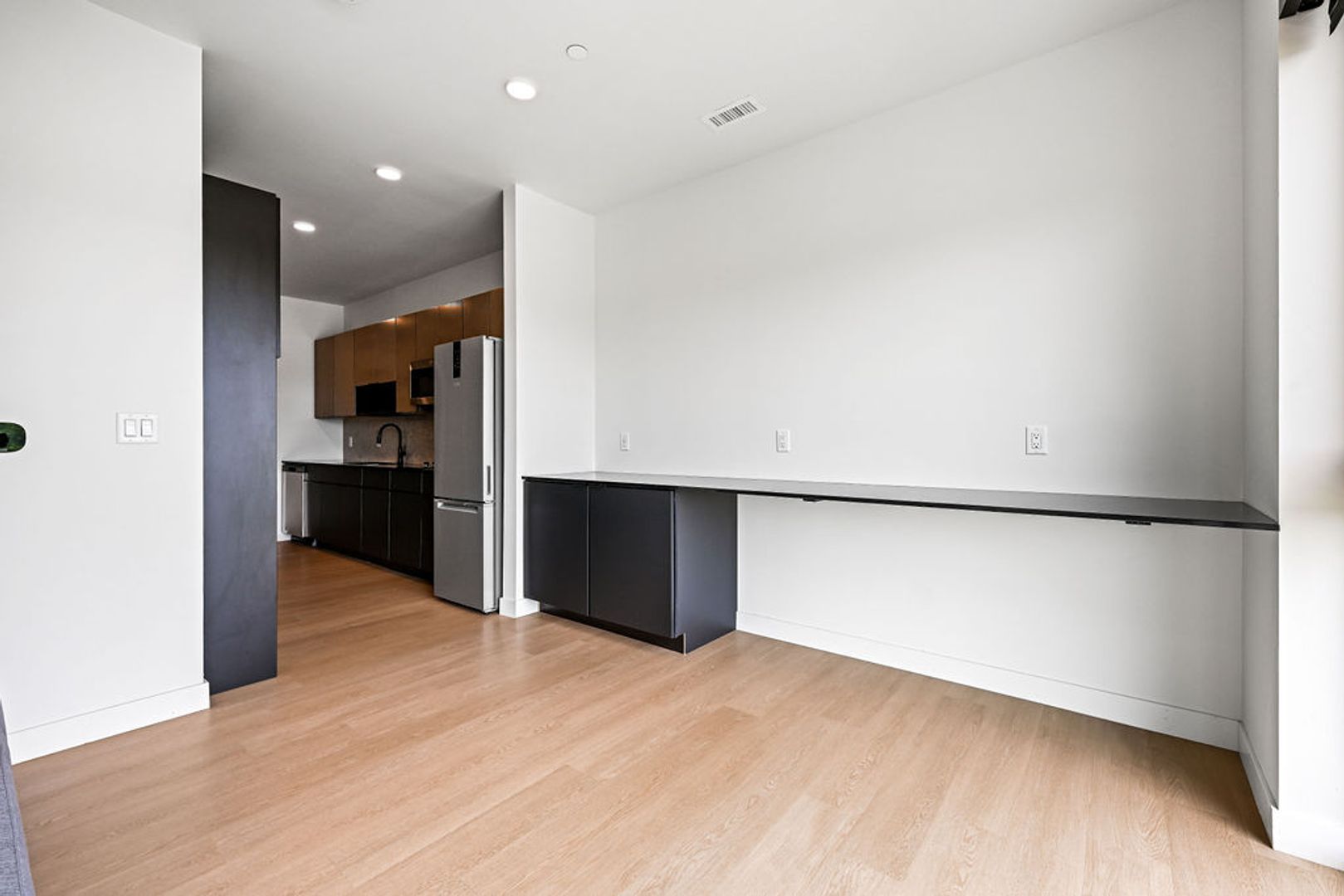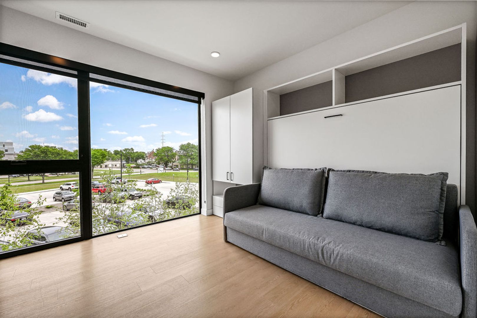 This is a studio unit in Mackson Corners, a 4-story residential development located at 417 Marion Road in Oshkosh, WI, directly on the Fox River. The building includes 74 residential units of various sizes, including furnished and unfurnished studios, one-bedroom units, and two-bedroom units. Features like the river-facing fitness center and walk-up residential units connect the building to the surrounding neighborhood, encouraging pedestrians to flow through the site to the river. There is also ample space for gathering on site including a first-floor lounge & rooftop terrace. The building has both underground, heated parking and surface parking.