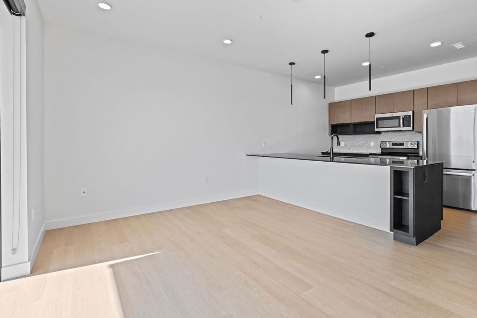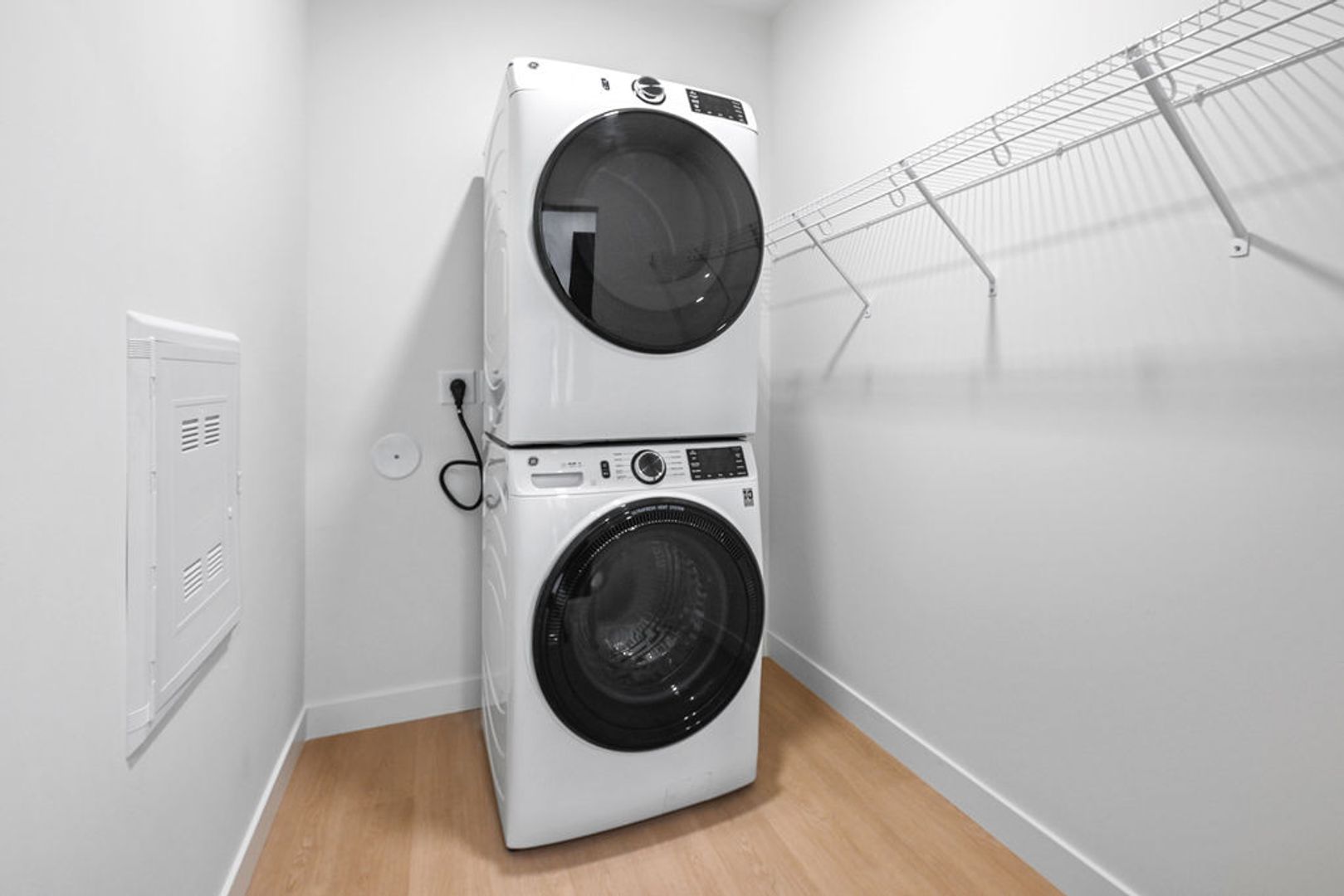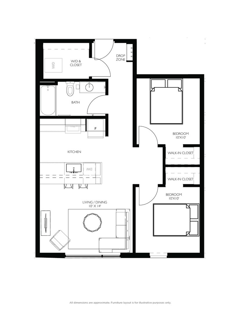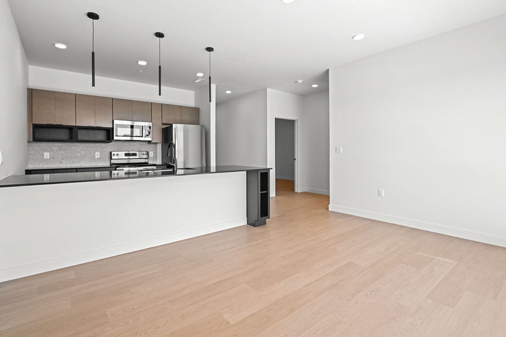This is a 2 bedroom, 1 bathroom unit in Mackson Corners, a 4-story residential development located at 417 Marion Road in Oshkosh, WI, directly on the Fox River. The building includes 74 residential units of various sizes, including furnished and unfurnished studios, one-bedroom units, and two-bedroom units. Features like the river-facing fitness center and walk-up residential units connect the building to the surrounding neighborhood, encouraging pedestrians to flow through the site to the river. There is also ample space for gathering on site including a first-floor lounge & rooftop terrace. The building has both underground, heated parking and surface parking.