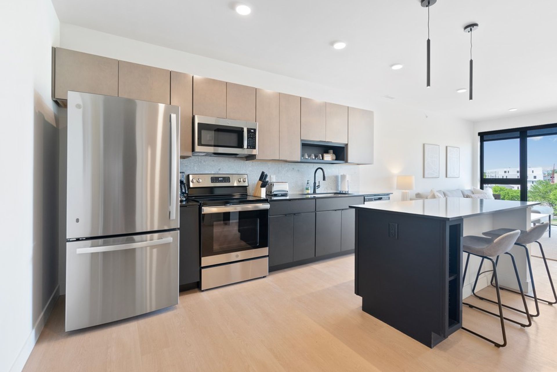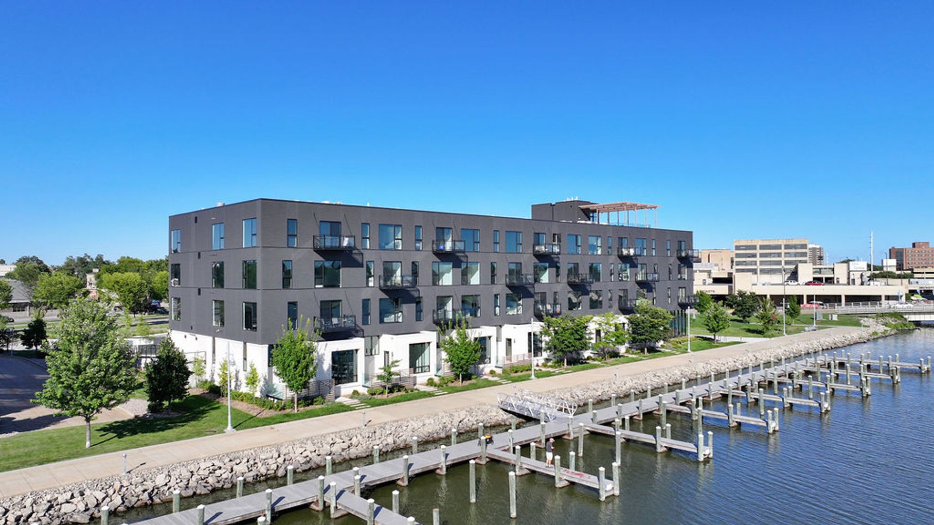 This is a 1 bedroom, 1 bathroom unit in Mackson Corners, a 4-story residential development located at 417 Marion Road in Oshkosh, WI, directly on the Fox River. The building includes 74 residential units of various sizes, including furnished and unfurnished studios, one-bedroom units, and two-bedroom units. Features like the river-facing fitness center and walk-up residential units connect the building to the surrounding neighborhood, encouraging pedestrians to flow through the site to the river. There is also ample space for gathering on site including a first-floor lounge & rooftop terrace. The building has both underground, heated parking and surface parking.