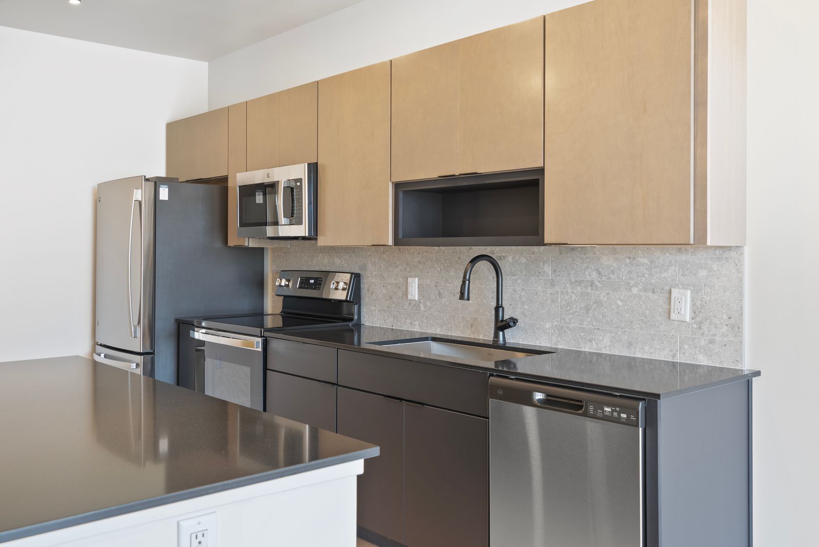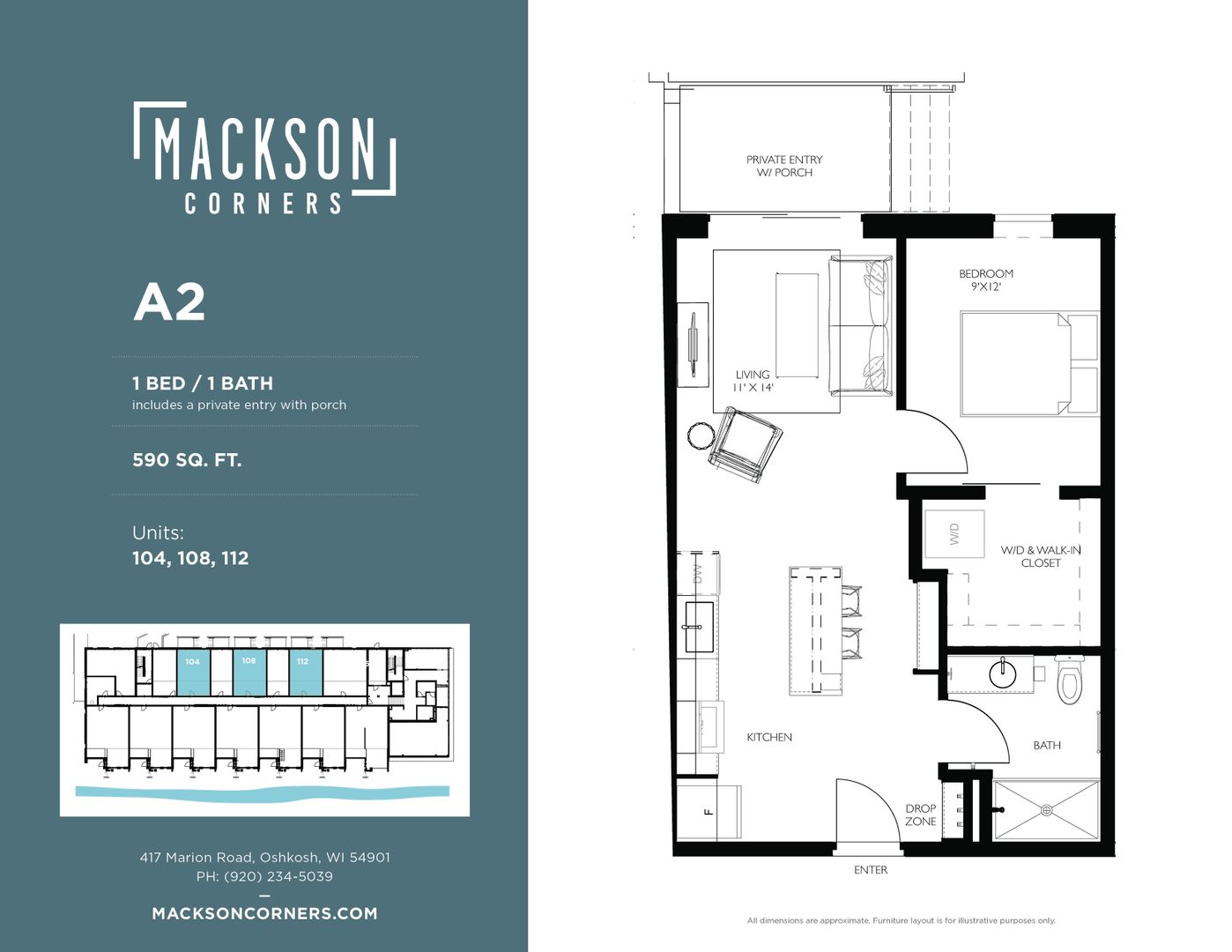 This is a 1 bedroom, 1 bathroom unit in Mackson Corners, a 4-story residential development located at 417 Marion Road in Oshkosh, WI, directly on the Fox River. The building includes 74 residential units of various sizes, including furnished and unfurnished studios, one-bedroom units, and two-bedroom units. Features like the river-facing fitness center and walk-up residential units connect the building to the surrounding neighborhood, encouraging pedestrians to flow through the site to the river. There is also ample space for gathering on site including a first-floor lounge & rooftop terrace. The building has both underground, heated parking and surface parking.