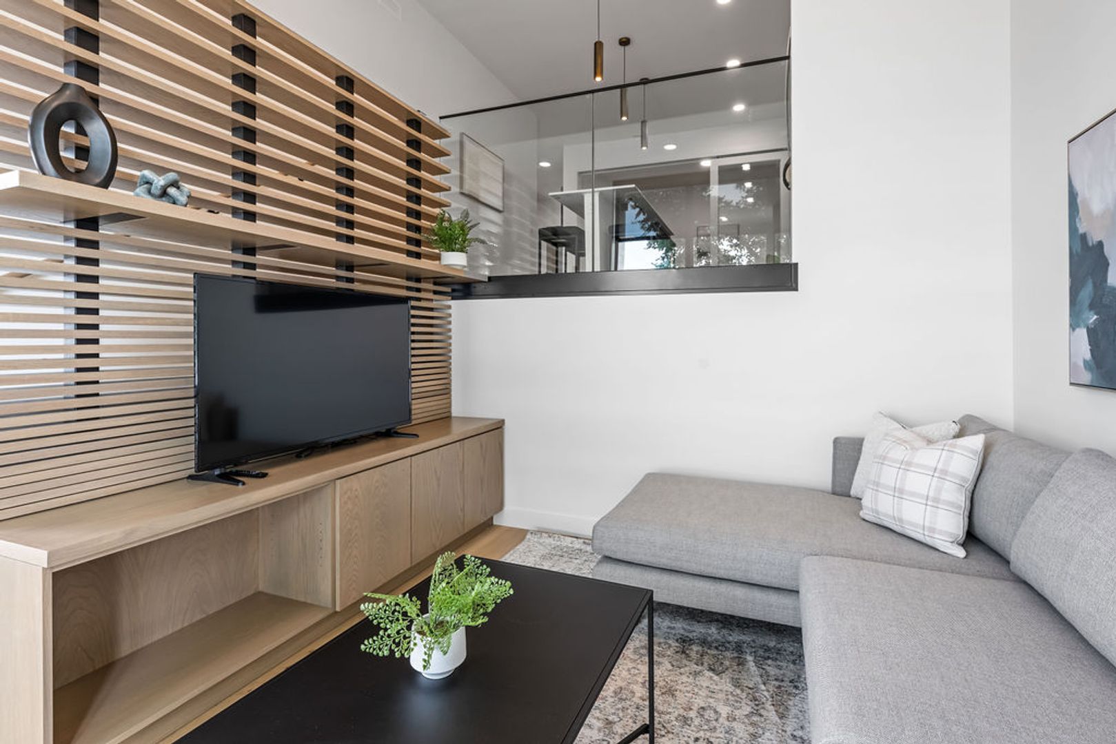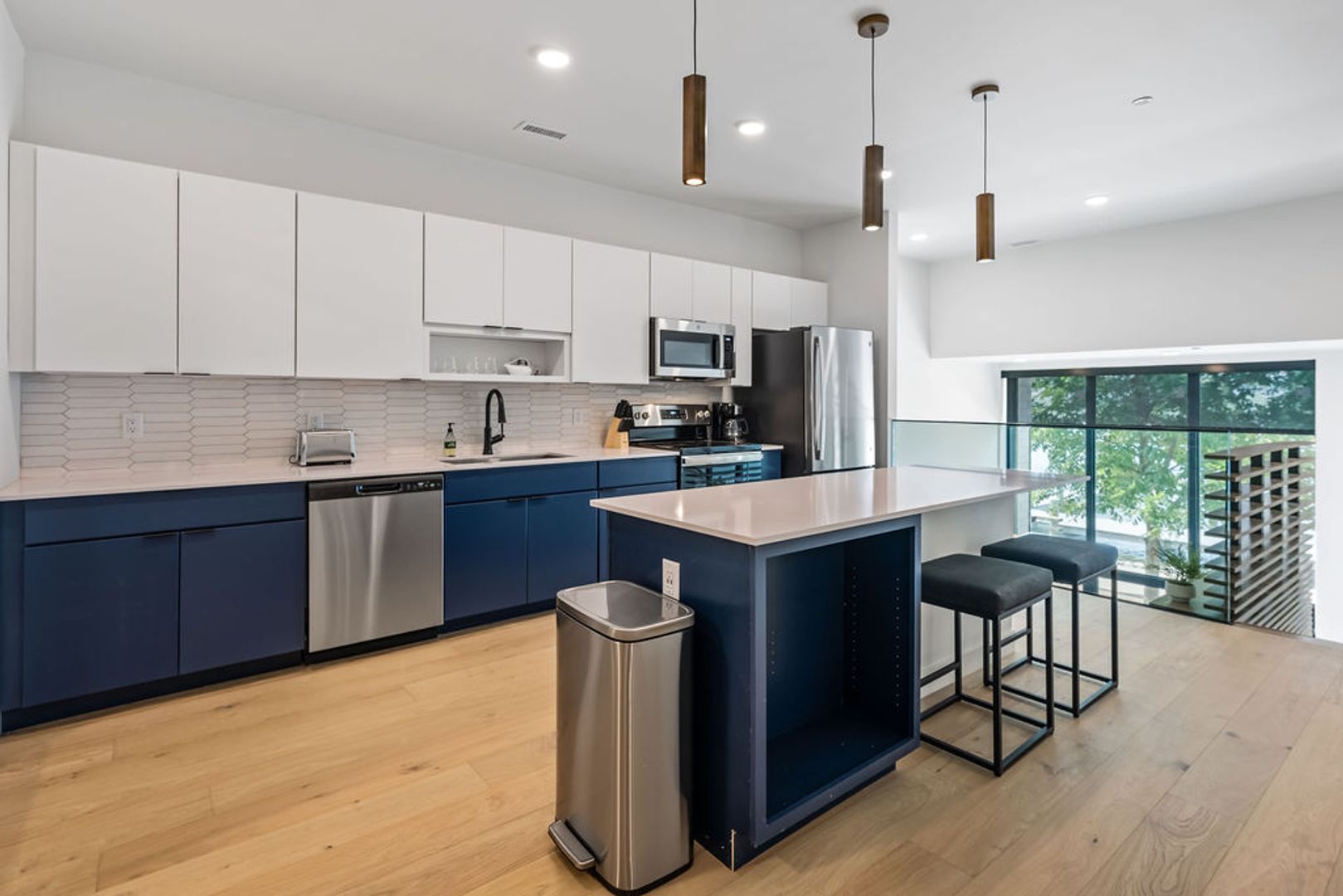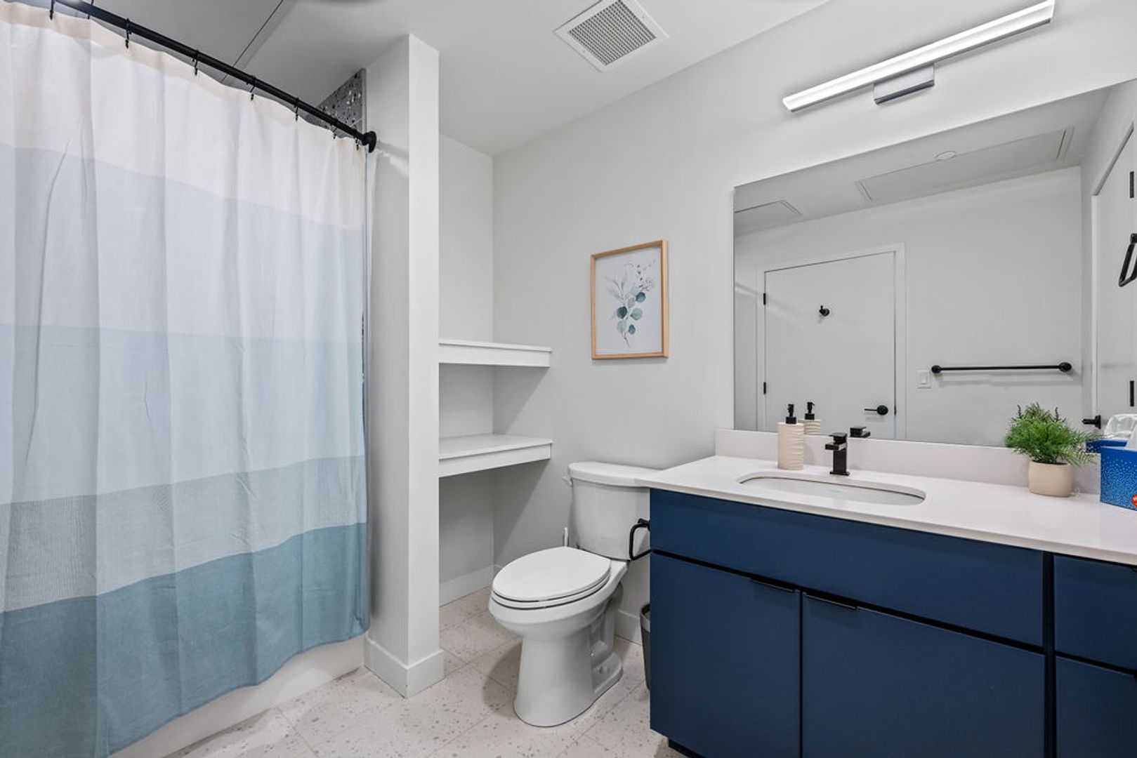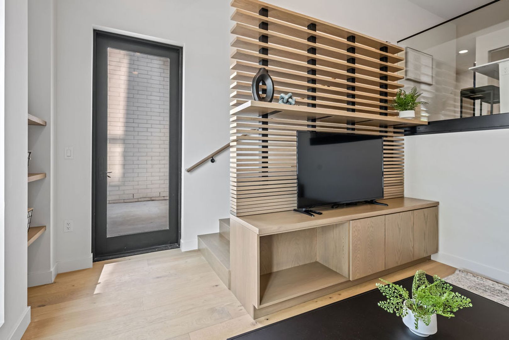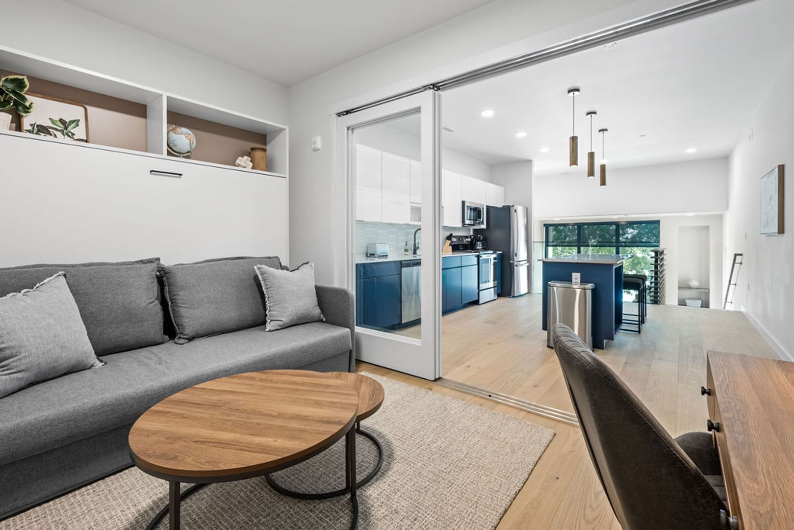 This is a 1 bedroom + den, 1.5 bathroom unit in Mackson Corners, a 4-story residential development located at 417 Marion Road in Oshkosh, WI, directly on the Fox River. The building includes 74 residential units of various sizes, including furnished and unfurnished studios, one-bedroom units, and two-bedroom units. Features like the river-facing fitness center and walk-up residential units connect the building to the surrounding neighborhood, encouraging pedestrians to flow through the site to the river. There is also ample space for gathering on site including a first-floor lounge & rooftop terrace. The building has both underground, heated parking and surface parking.