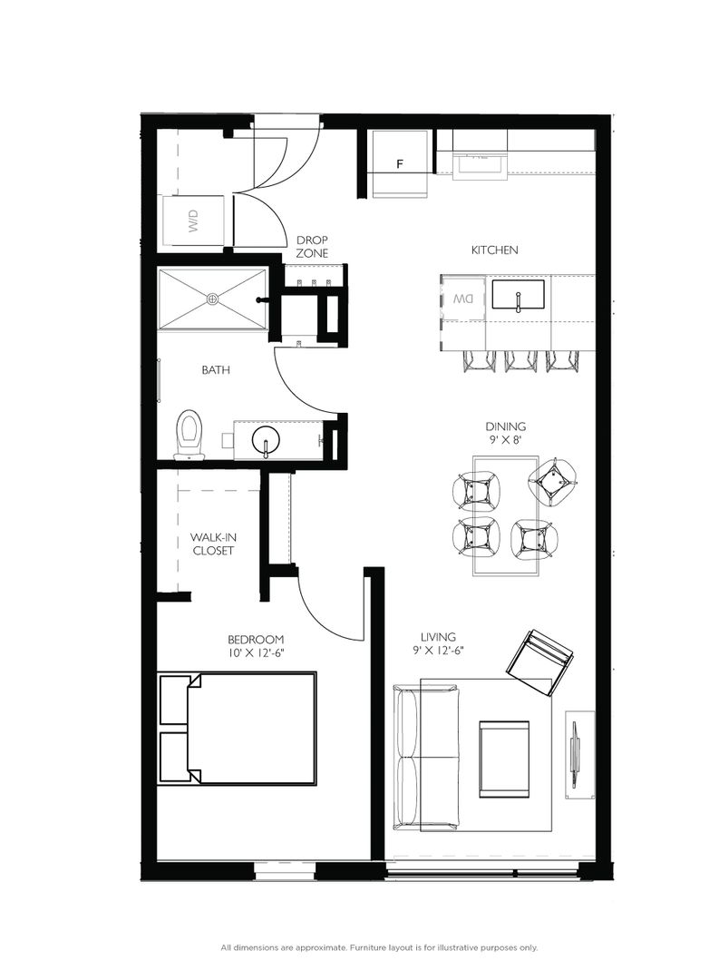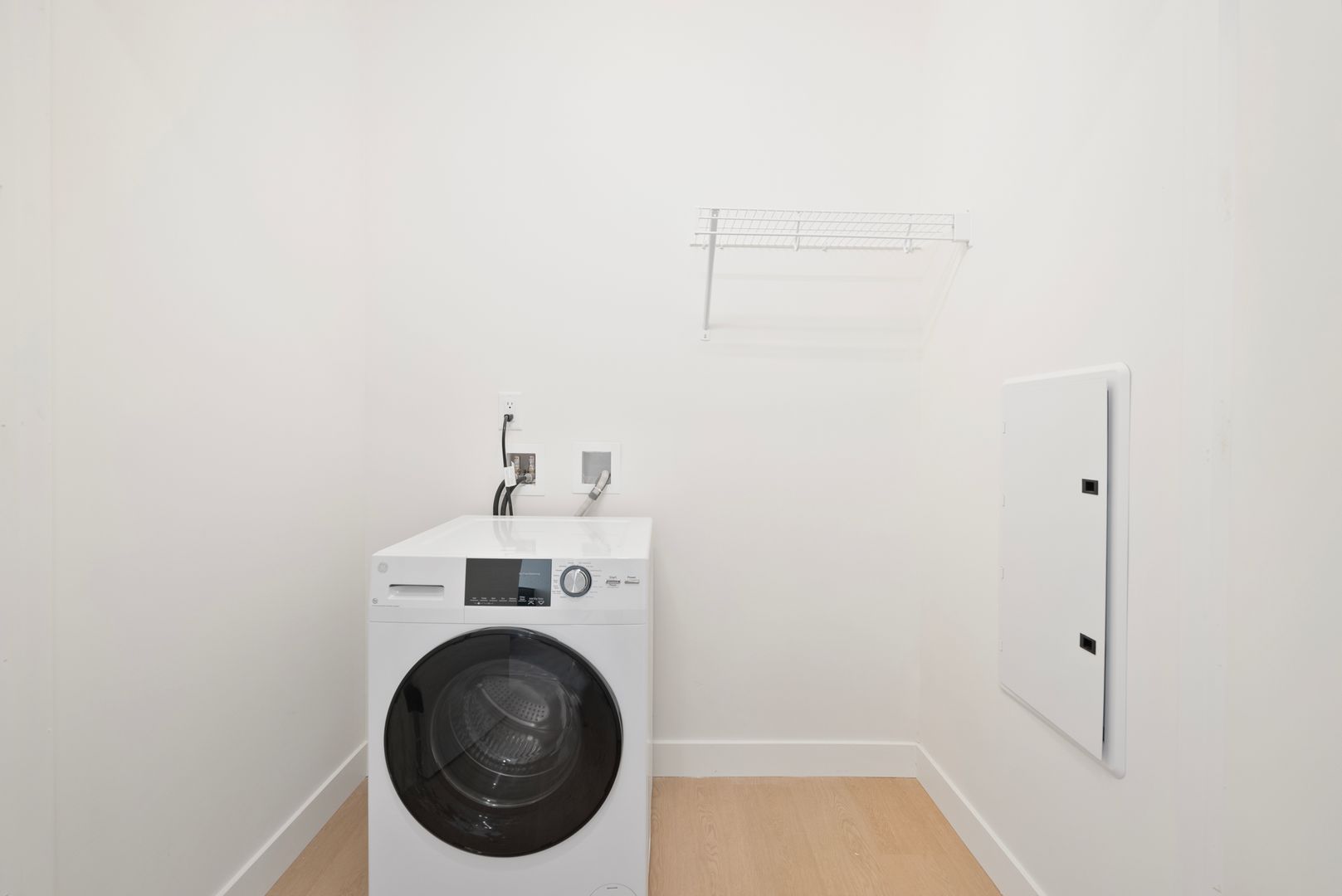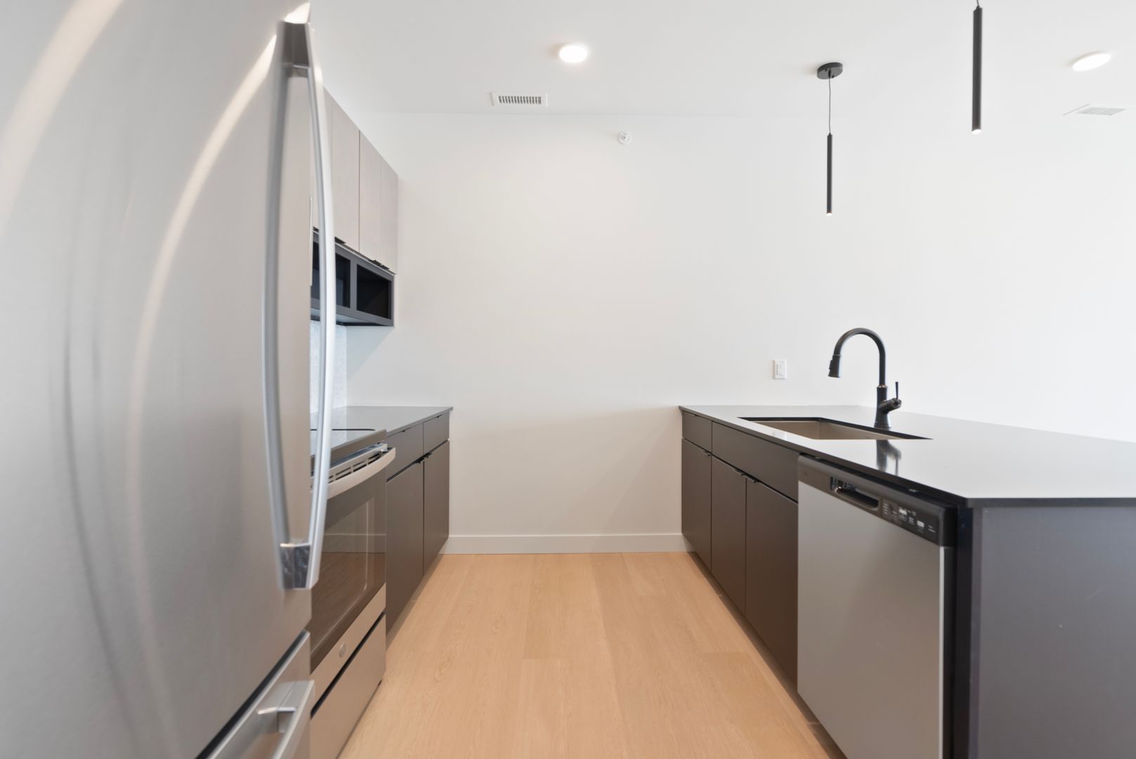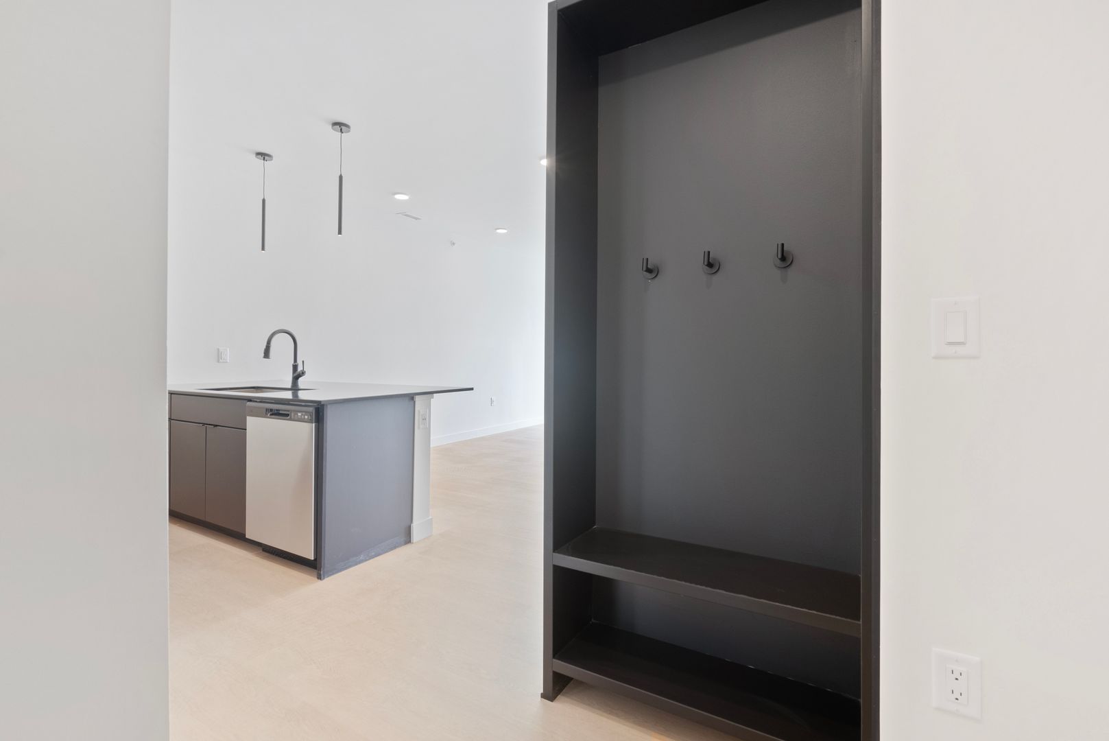 This is a 1 bedroom, 1 bathroom unit in Mackson Corners, a 4-story residential development located at 417 Marion Road in Oshkosh, WI, directly on the Fox River. The building includes 74 residential units of various sizes, including furnished and unfurnished studios, one-bedroom units, and two-bedroom units. Features like the river-facing fitness center and walk-up residential units connect the building to the surrounding neighborhood, encouraging pedestrians to flow through the site to the river. There is also ample space for gathering on site including a first-floor lounge & rooftop terrace. The building has both underground, heated parking and surface parking.